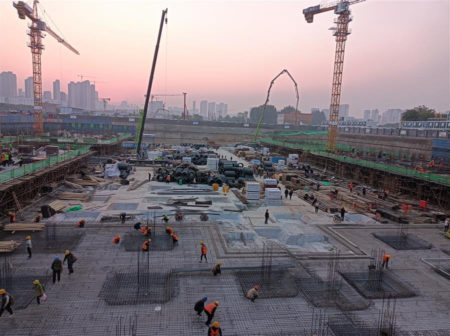 為加快推進(jìn)項目建設(shè),項目部一手抓防疫,一手抓建設(shè)。在做好疫情防控的基礎(chǔ)上增加作業(yè)人員、增加作業(yè)面,采取平面分區(qū)、分段流水交叉作業(yè)施工;加強(qiáng)各工序之間的有效銜接,充分利用施工面做到均衡施工;加大材料設(shè)備的投入,提前購置充足的機(jī)械設(shè)備,采取新材料、新技術(shù)減少耗材。項目每天進(jìn)場的勞務(wù)人員達(dá)300余人次,有時單個施工區(qū)域就達(dá)40余人作業(yè)。項目管理人員團(tuán)結(jié)協(xié)作、集體攻關(guān),在施工現(xiàn)場日夜值守,吹響了“決戰(zhàn)四季度”的沖鋒號角。