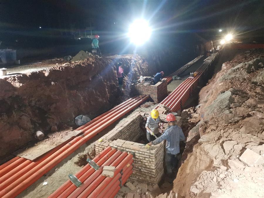 搶晴天、戰(zhàn)雨天,無問天氣、只爭工期。團結(jié)拼搏、決戰(zhàn)決勝的毅力和斗志,在這個項目上得到充分體現(xiàn),市政道路和給排水、強弱電、圍墻、園林景觀、綠化、亮化等分部分項工程在1606畝的場地上全面鋪開。